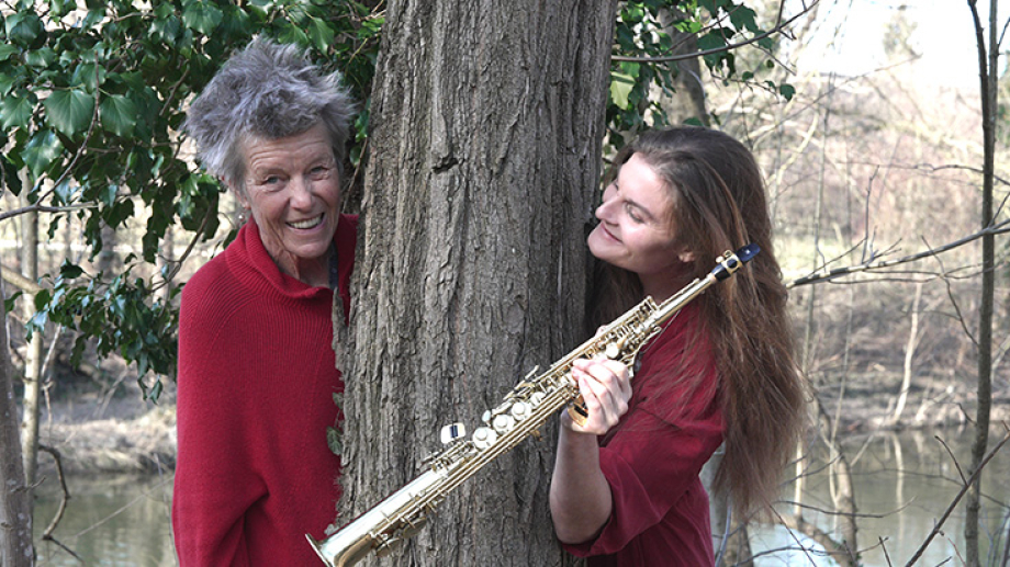Mit Florianne Koechlin (Autorin) und Noëmi Schwank (Saxophon)